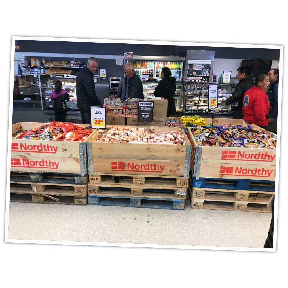 Med på turen var Søren Lukassen og Nordthy-salgschef Hans Peter Skjødt, som var med Børge Lukassen rundt i 15 butikker – og som kunne se ham lige rette varerne lidt til i det ene Pisiffik-supermarked efter det andet.